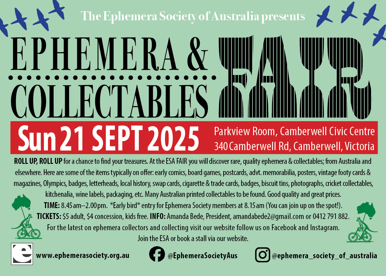 SUNDAY 21 SEPTEMBER 2025 – THE EPHEMERA FAIR – we have a wonderful array of confectionery boxes and tins for sale. See the flyer at the end for details.