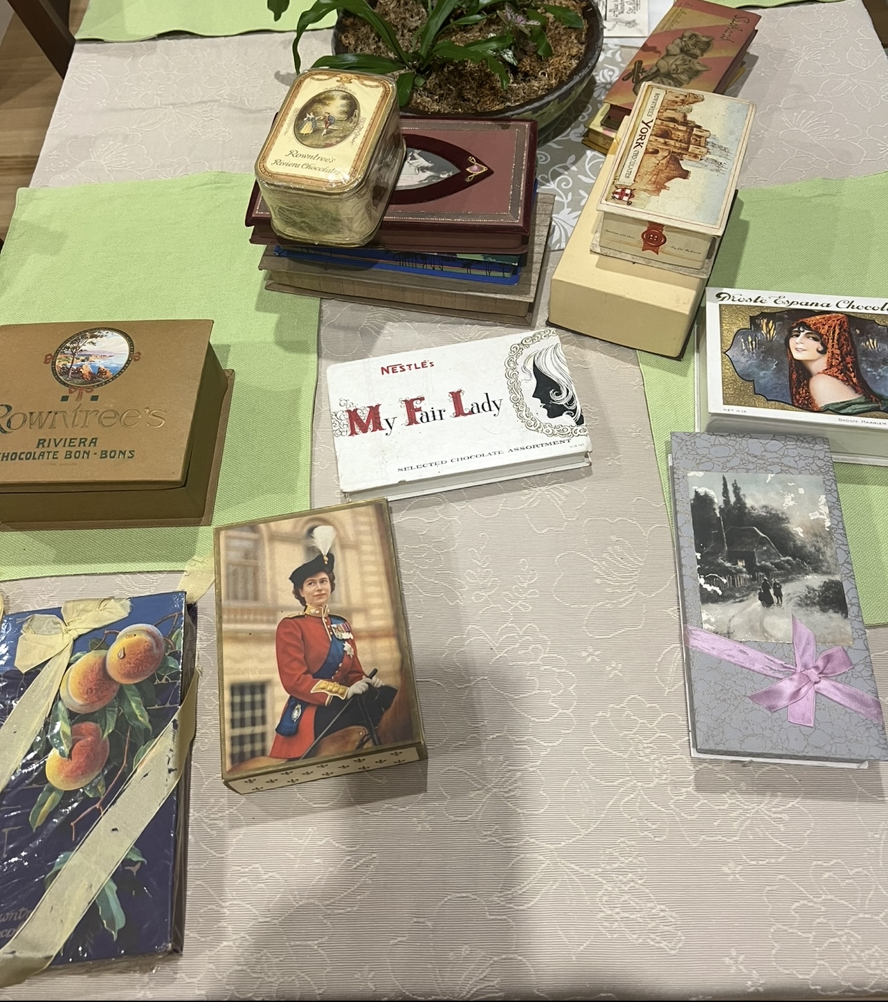 Chris Lynch September 2025 stall, tins, small packets, wattle, chocolate