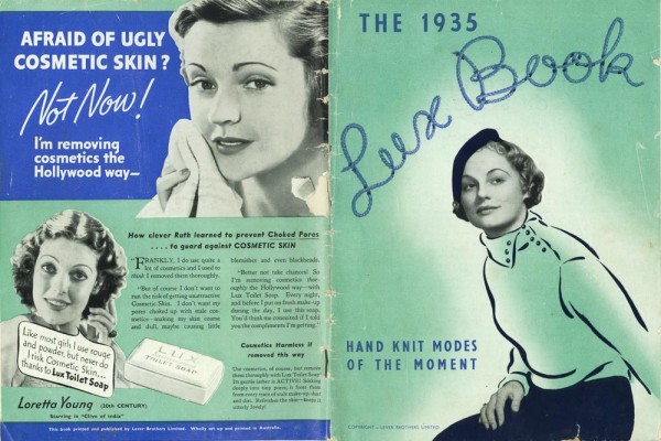 The 1935 Lux book: hand knits of the moment. 24.5 x 18.5 cm. Stapled, 48 pages. Two colour cover. Only patterns, cheaper quality paper. Endorsement from London correspondent, Lady Margaret. Put out by soap producers Lux.
