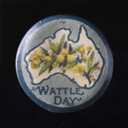 Although wattle was associated with Australia from very early days, its significance increased around the time of Federation. The first celebration of Wattle Day was held on 1 September 1910 in Sydney, Melbourne and Adelaide. Plans in 1913 to proclaim the wattle a national emblem and celebrate Wattle Day nationally were interrupted by World War I, but wattle remained a strong symbol of patriotism during the war years. Sprigs of wattle and colourful badges were sold on Wattle Day to raise money for the Red Cross. NSW changed the date to 1 August in 1916 because that allowed the Red Cross to use the earlier flowering and more familiar Cootamundra Wattle rather than Golden Wattle. Wattle was sent overseas in letters during the war and was presented to homecoming service men and women at what must have been an emotional moment.